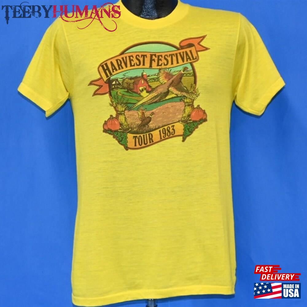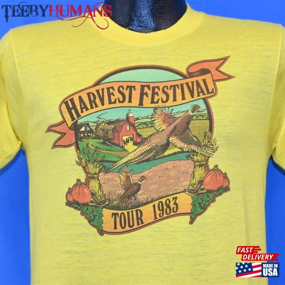 80S Harvest Festival Tour 1983 Bluegrass Country Music Farm Pheasant T Shirt Small Unisex T-Shirt. The latest trend in music shirts is a shirt that reflects the top trends in music.