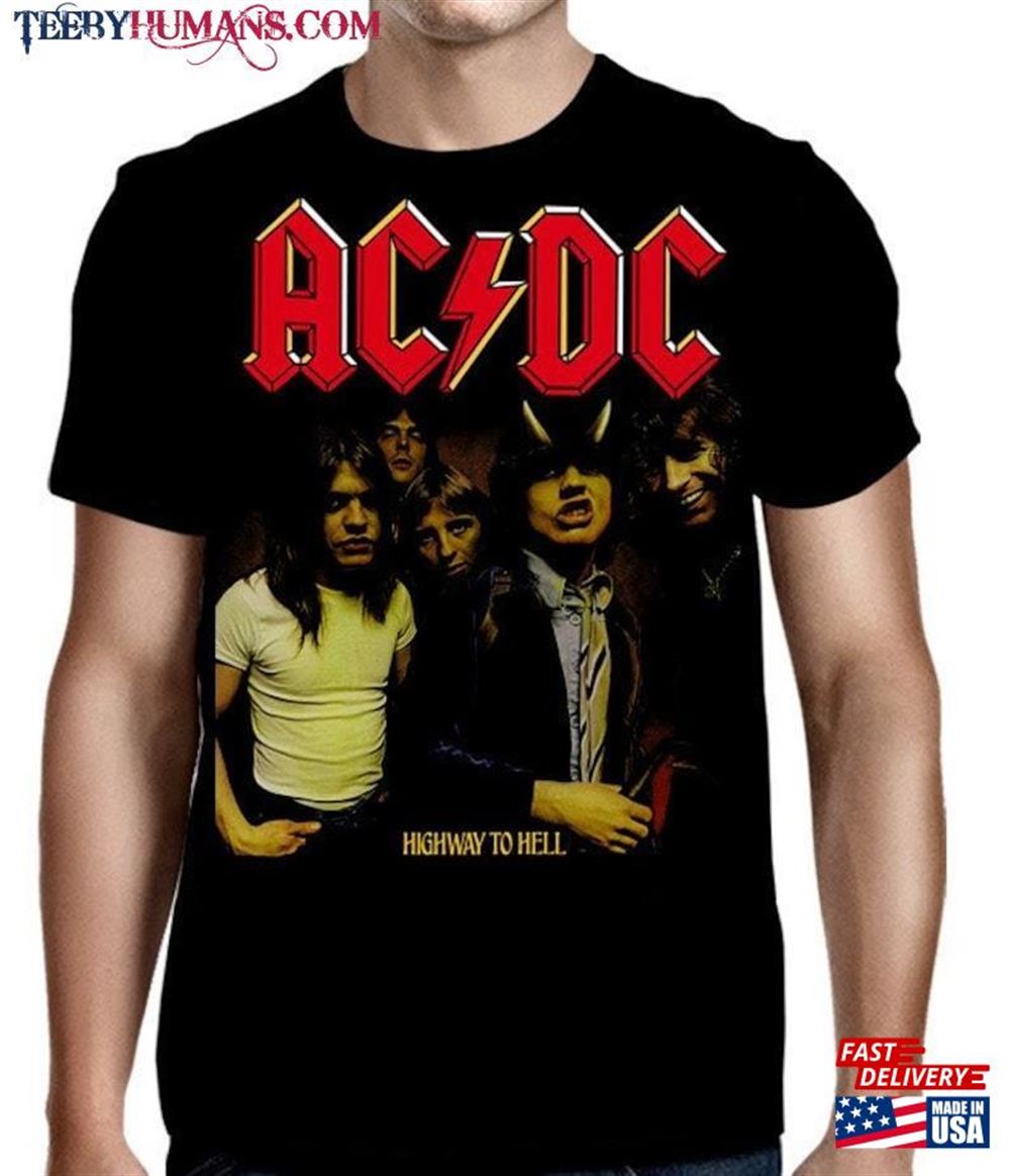 Acdc Highway To Hell Black T-Shirt Unisex Hoodie A music t-shirt is a type of clothing that features designs, logos, or images related to music. It is a popular fashion choice among music enthusiasts, musicians, and fans of specific bands or genres. These t-shirts often display the names or album covers of favorite bands or artists, iconic symbols associated with music, or lyrics from beloved songs. Music t-shirts serve as a form of self-expression, allowing individuals to showcase their musical preferences and interests. They can be found in various styles, colors, and sizes, catering to different tastes and fashion trends. Music t-shirts are not only a fashion statement but also a way for people to connect with others who share similar musical interests. Wearing a music t-shirt can spark conversations and create a sense of belonging within a community of music lovers. Whether it’s a vintage band t-shirt from the past or a contemporary design featuring current artists, music t-shirts are a fun and stylish way to celebrate the power and influence of music in our lives.