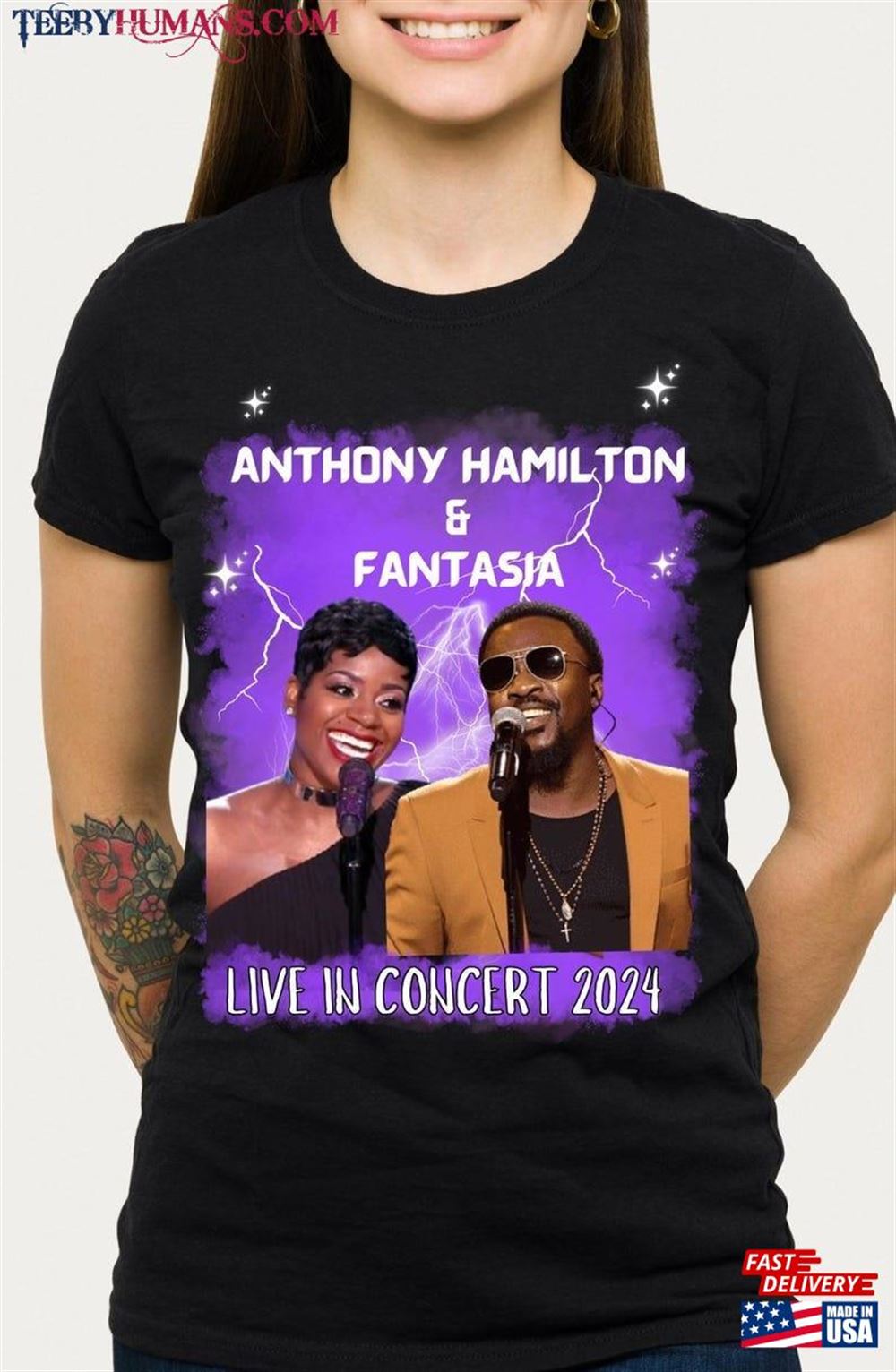 Anthony Hamilton And Fantasia Tshirt Unisex Classic A music t-shirt is a type of clothing that features designs, logos, or images related to music. It is a popular fashion choice among music enthusiasts, musicians, and fans of specific bands or genres. These t-shirts often display the names or album covers of favorite bands or artists, iconic symbols associated with music, or lyrics from beloved songs. Music t-shirts serve as a form of self-expression, allowing individuals to showcase their musical preferences and interests. They can be found in various styles, colors, and sizes, catering to different tastes and fashion trends. Music t-shirts are not only a fashion statement but also a way for people to connect with others who share similar musical interests. Wearing a music t-shirt can spark conversations and create a sense of belonging within a community of music lovers. Whether it’s a vintage band t-shirt from the past or a contemporary design featuring current artists, music t-shirts are a fun and stylish way to celebrate the power and influence of music in our lives.