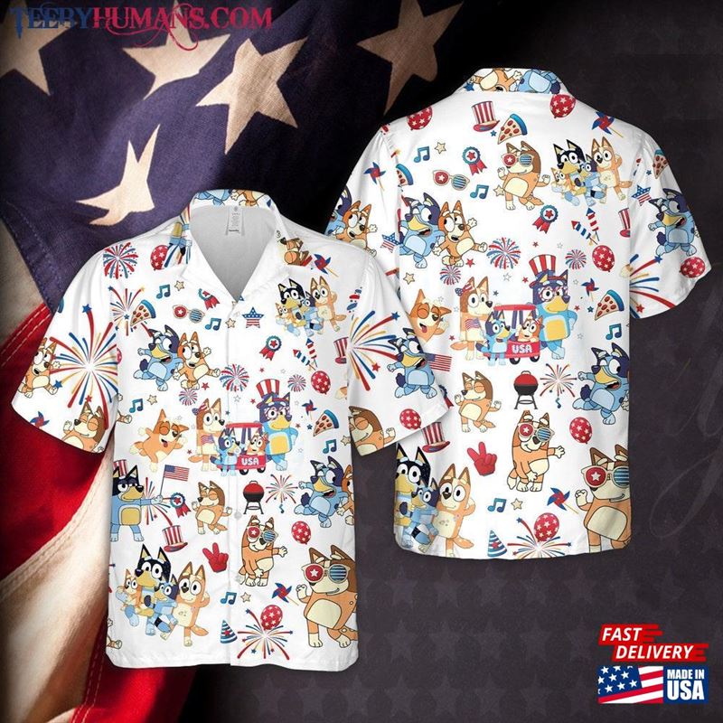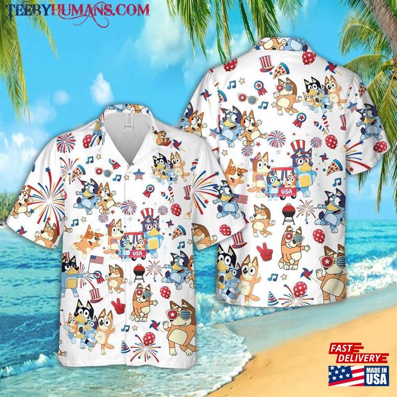 Bluey Hawaiian Shirt 4Th Of July. The Hawaiian shirt has gained widespread popularity as a fashion staple, known for its colorful and vibrant floral prints. These shirts are lightweight, making them an ideal option for warmer weather.