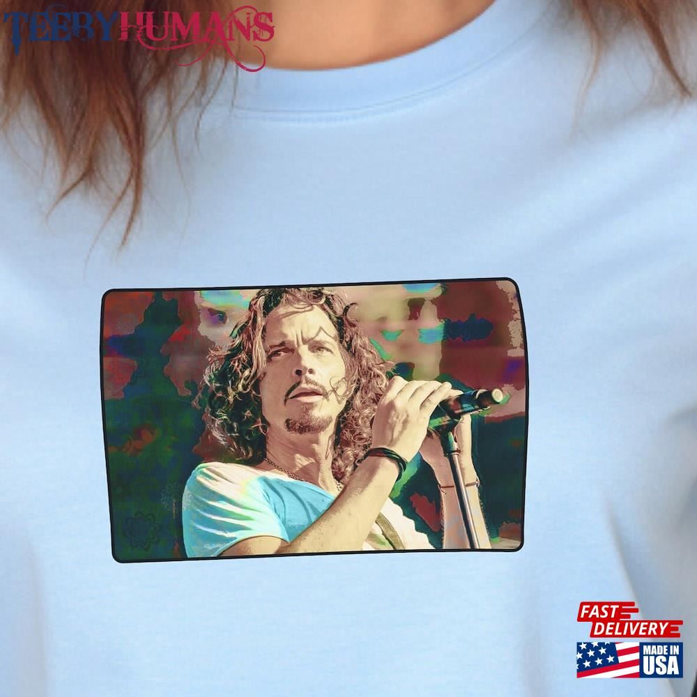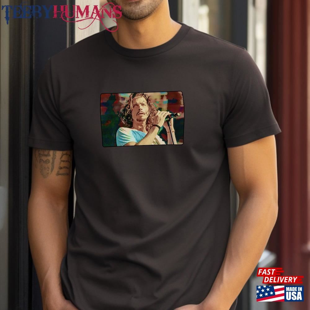 Chris Cornell Soundgarden Audioslave Frontman Band Musician Singer Grunge 1990 S Hoodie T-Shirt A music t-shirt is a type of clothing that features designs, logos, or images related to music. It is a popular fashion choice among music enthusiasts, musicians, and fans of specific bands or genres. These t-shirts often display the names or album covers of favorite bands or artists, iconic symbols associated with music, or lyrics from beloved songs. Music t-shirts serve as a form of self-expression, allowing individuals to showcase their musical preferences and interests. They can be found in various styles, colors, and sizes, catering to different tastes and fashion trends. Music t-shirts are not only a fashion statement but also a way for people to connect with others who share similar musical interests. Wearing a music t-shirt can spark conversations and create a sense of belonging within a community of music lovers. Whether it’s a vintage band t-shirt from the past or a contemporary design featuring current artists, music t-shirts are a fun and stylish way to celebrate the power and influence of music in our lives.