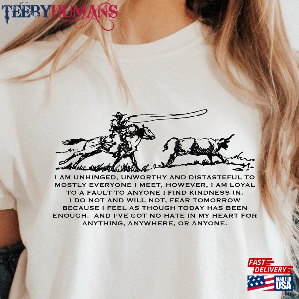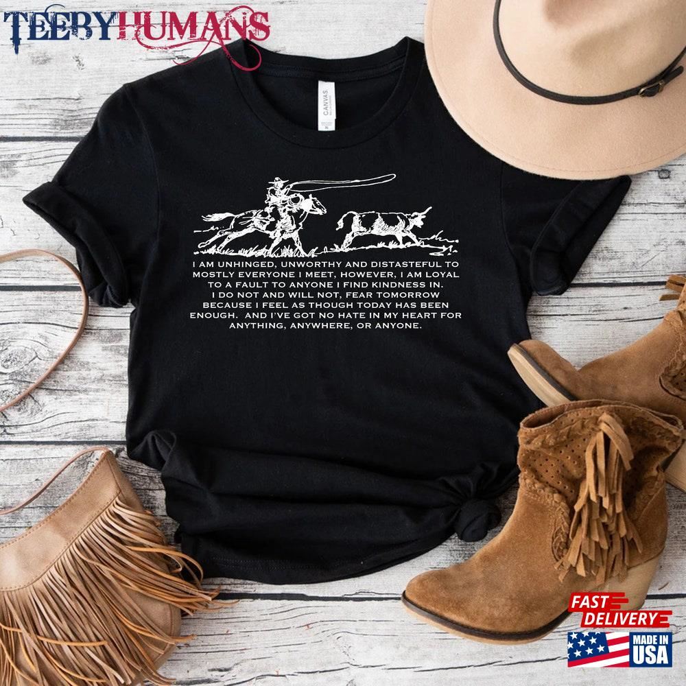 Country Music Song Lyrics Shirt I Do Not And Will Fear Tomorrow Zach Bryan Horse Cowboy Roping T-Shirt Sweatshirt