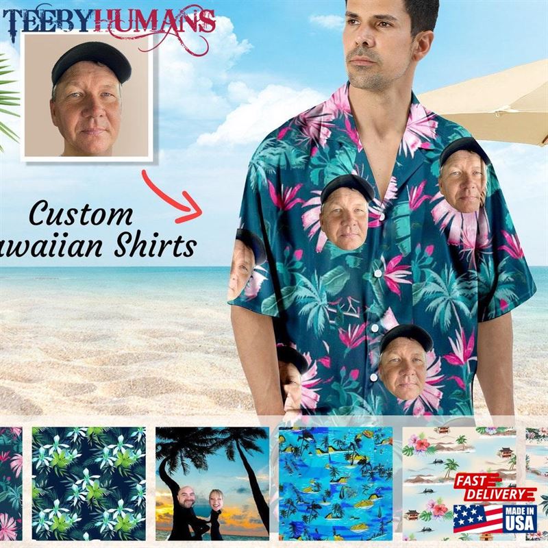 Custom Face Hawaiian Shirt Personalized Photo Flower Print Shirts Customize Short Sleeve Unisex. The Hawaiian shirt has become a widely popular fashion item known for its bright colors and floral designs. These shirts are made of lightweight materials, making them an ideal option for warmer weather.