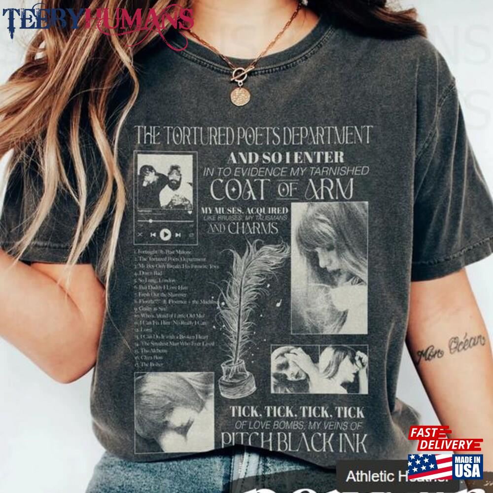 Dive Into Nostalgia With The Tortured Poets Department Comfort Colors Shirt Essential For Swiftie Enthusiasts Sweatshirt Classic A music t-shirt is a type of clothing that features designs, logos, or images related to music. It is a popular fashion choice among music enthusiasts, musicians, and fans of specific bands or genres. These t-shirts often display the names or album covers of favorite bands or artists, iconic symbols associated with music, or lyrics from beloved songs. Music t-shirts serve as a form of self-expression, allowing individuals to showcase their musical preferences and interests. They can be found in various styles, colors, and sizes, catering to different tastes and fashion trends. Music t-shirts are not only a fashion statement but also a way for people to connect with others who share similar musical interests. Wearing a music t-shirt can spark conversations and create a sense of belonging within a community of music lovers. Whether it’s a vintage band t-shirt from the past or a contemporary design featuring current artists, music t-shirts are a fun and stylish way to celebrate the power and influence of music in our lives.