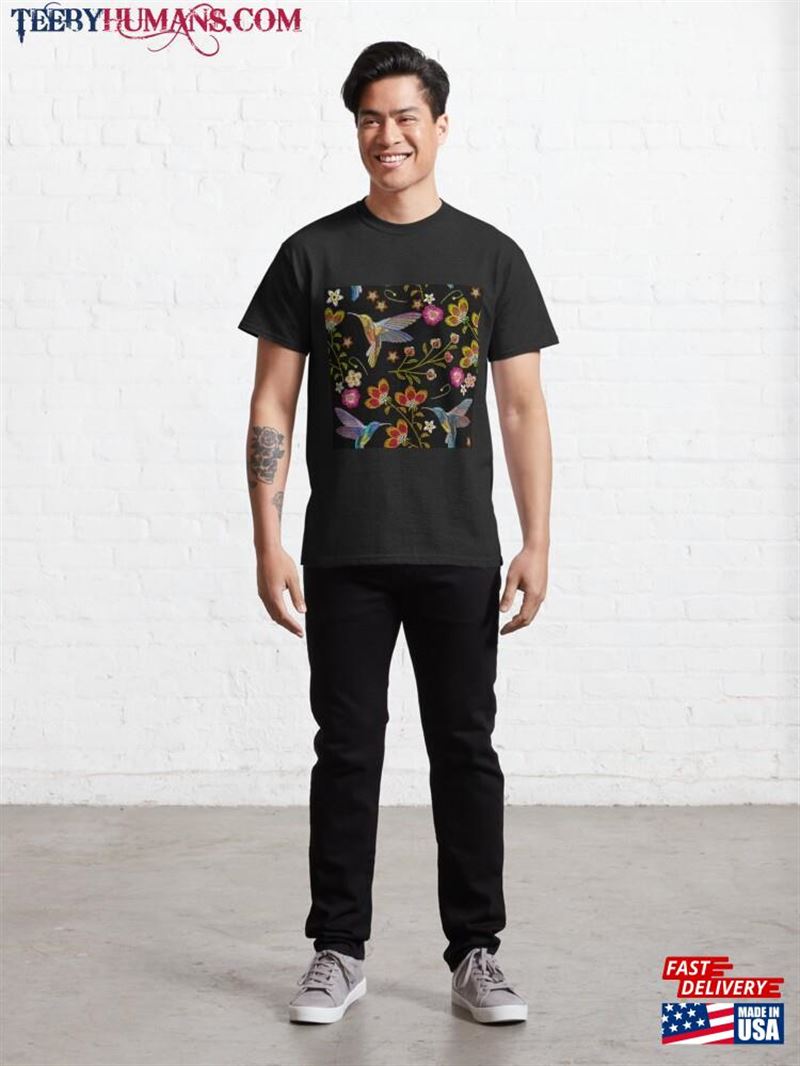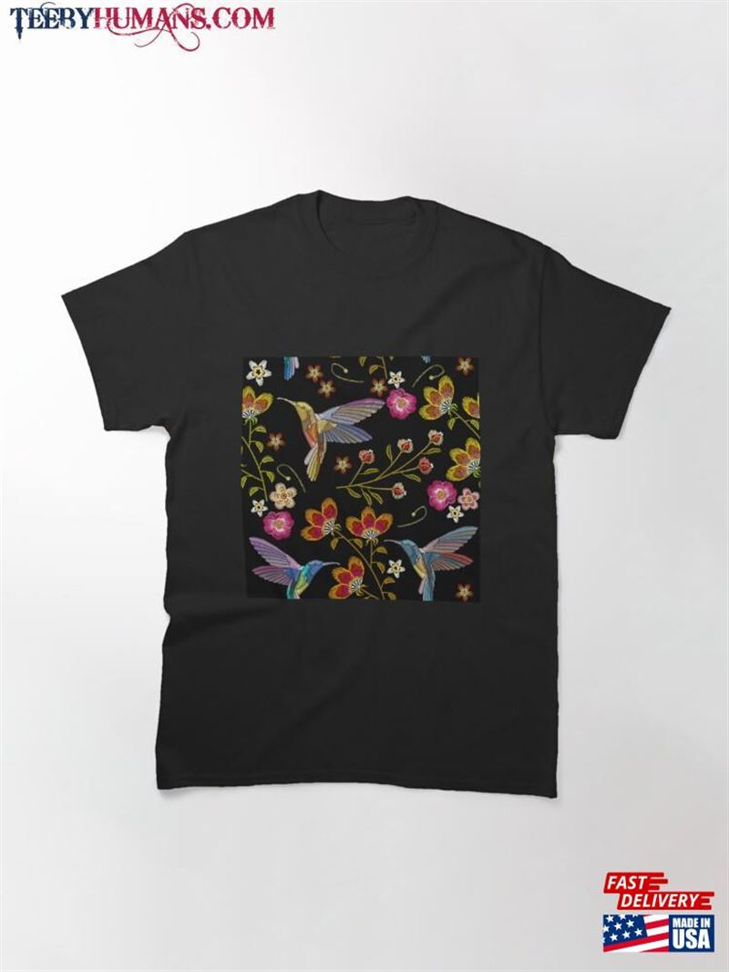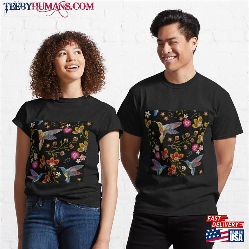 Embroidery Humming Bird Classic T-Shirt Hoodie. T-shirts that feature embroidery are a fashionable and modern choice for any wardrobe. With their detailed designs and expert stitching, these shirts are a great way to make a bold statement and enhance any outfit. In addition to their stylish appearance, they also offer a comfortable and cozy feel against the skin.