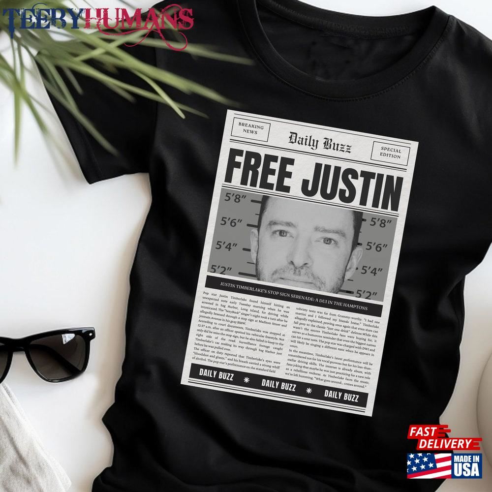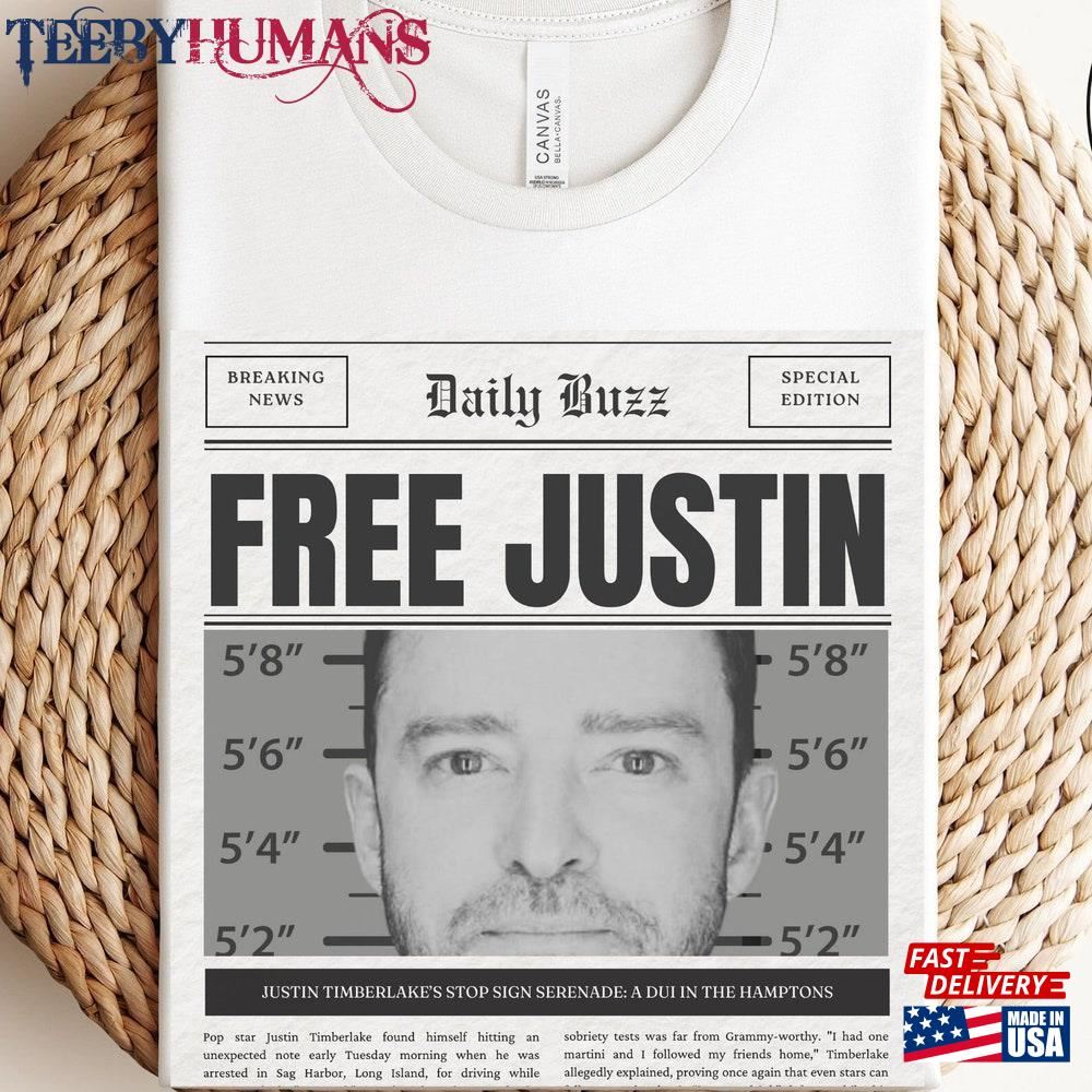 Free Justin Timberlake Shirt Viral Jt Mug Shot T-Shirt Newspaper Black And White Fan Gift Sweatshirt. The latest trend in music shirts is a shirt that reflects the top trends in music.
