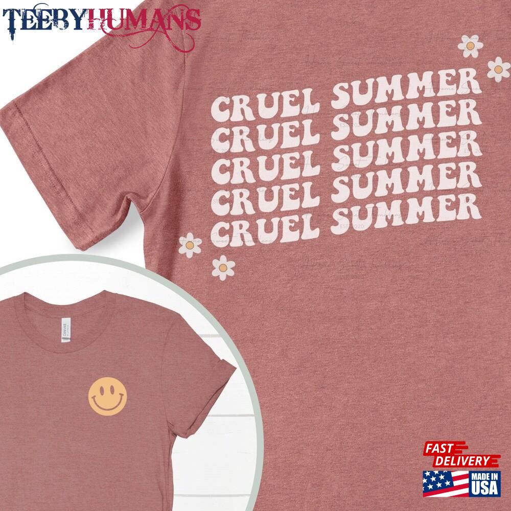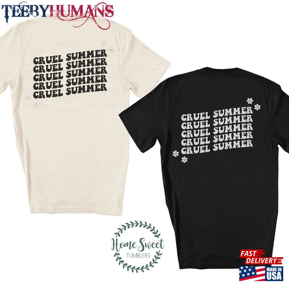 Taylor Swift Shirt Cruel Summer The Eras Tour Unisex Sweatshirt A music t-shirt is a type of clothing that features designs, logos, or images related to music. It is a popular fashion choice among music enthusiasts, musicians, and fans of specific bands or genres. These t-shirts often display the names or album covers of favorite bands or artists, iconic symbols associated with music, or lyrics from beloved songs. Music t-shirts serve as a form of self-expression, allowing individuals to showcase their musical preferences and interests. They can be found in various styles, colors, and sizes, catering to different tastes and fashion trends. Music t-shirts are not only a fashion statement but also a way for people to connect with others who share similar musical interests. Wearing a music t-shirt can spark conversations and create a sense of belonging within a community of music lovers. Whether it’s a vintage band t-shirt from the past or a contemporary design featuring current artists, music t-shirts are a fun and stylish way to celebrate the power and influence of music in our lives.