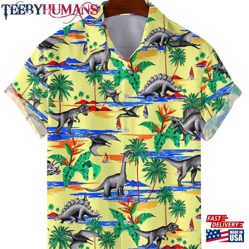 Tropical Dinosaur Hawaiian Shirts For Men Women Summer Aloha Button Down Short Sleeves Men’S Shirt. The Hawaiian shirt is a unique garment that has become a popular fashion item around the world. Its colorful floral patterns and lightweight fabric make it a comfortable and stylish choice for those seeking a relaxed and tropical vibe.