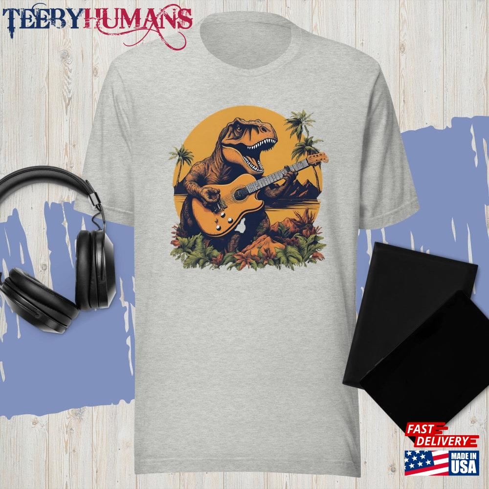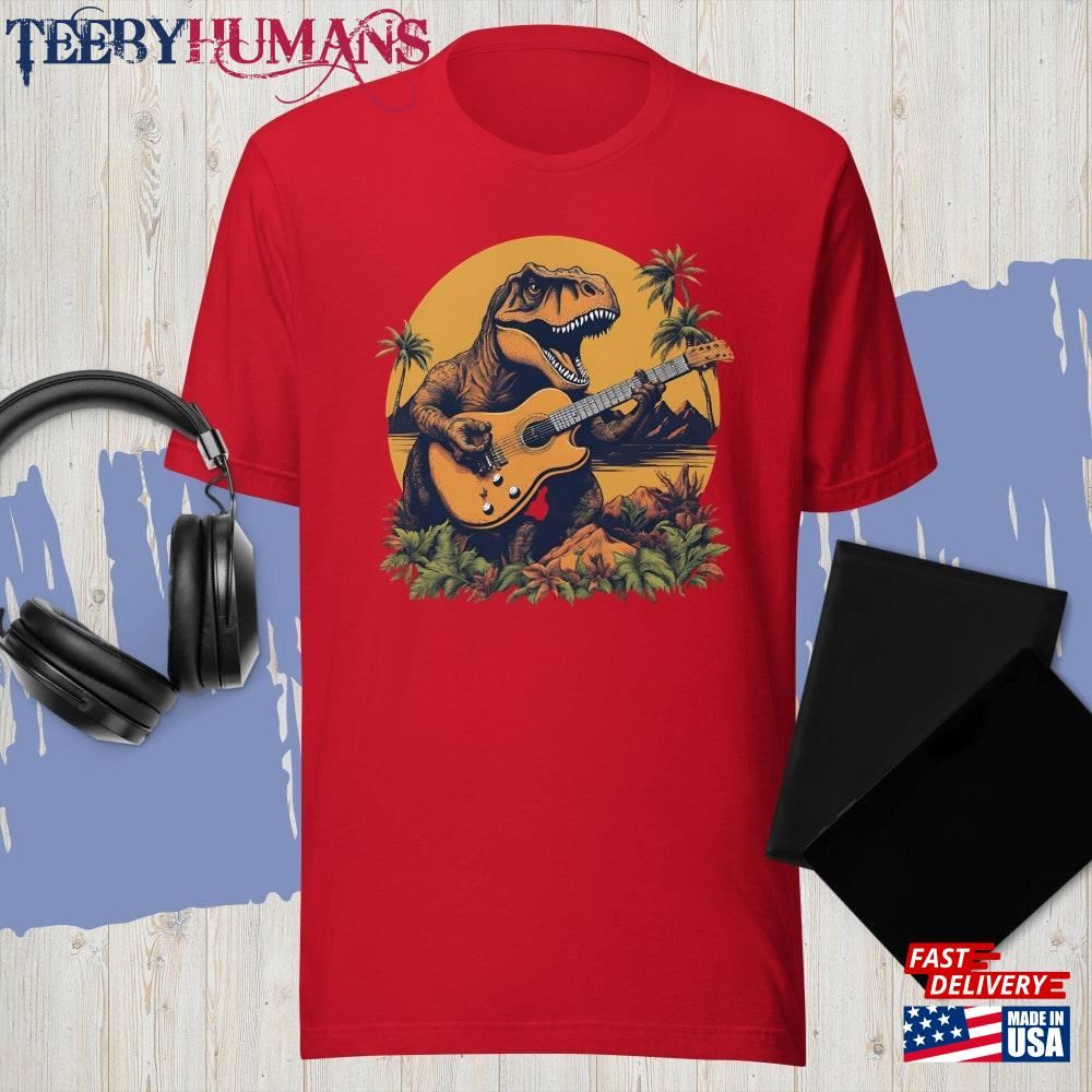 Vintage Funny Guitar T-Shirt Dinosaur Playing Men Women Hoodie