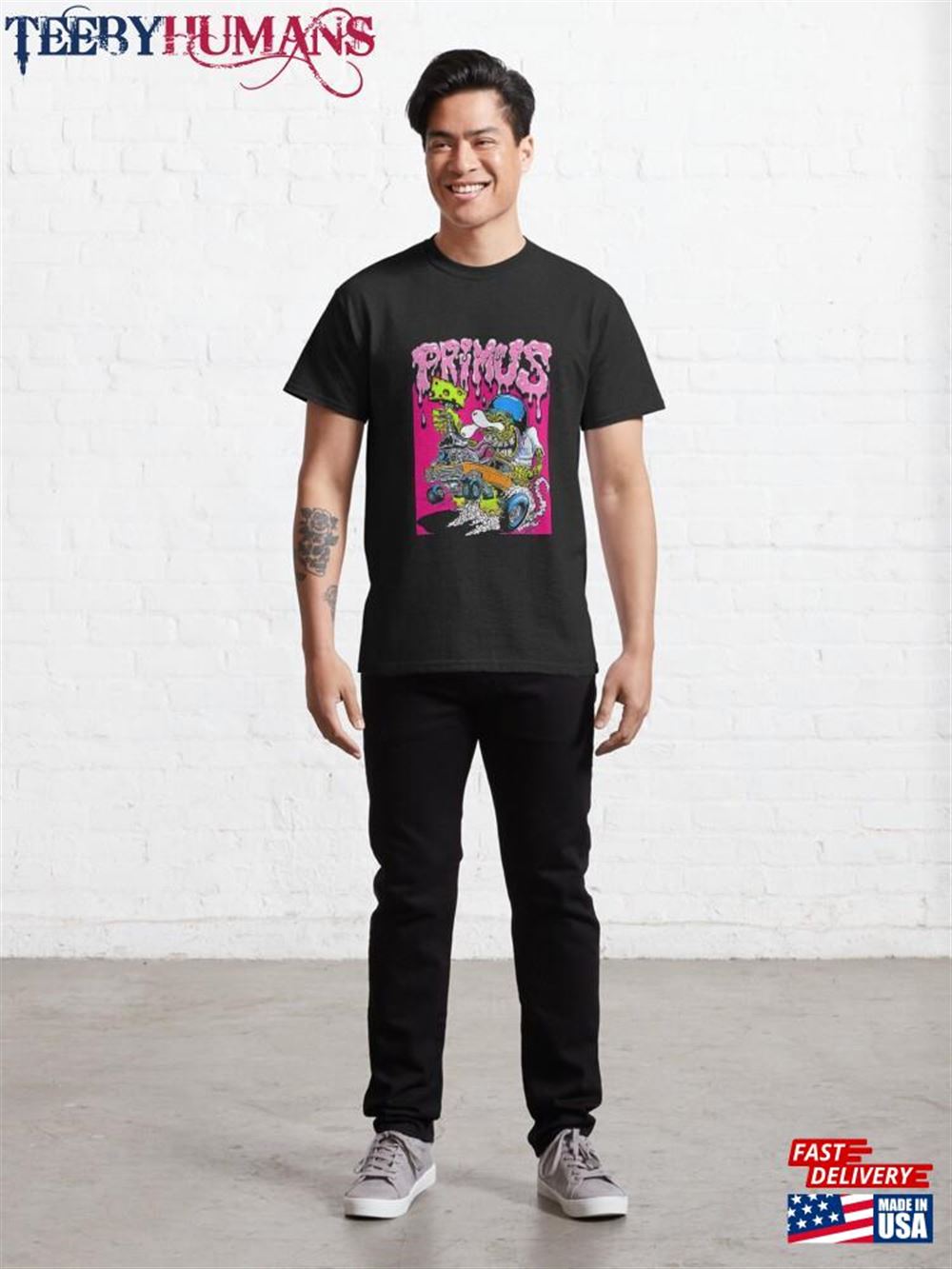Bestie Primus Band Classic T-Shirt Sweatshirt A music t-shirt is a type of clothing that is designed to showcase one’s love and passion for music. It typically features various elements related to music, such as musical instruments, lyrics, album covers, or iconic images of famous musicians or bands. These t-shirts serve as a form of self-expression and allow individuals to display their musical taste and preferences to the world. Music t-shirts come in a wide range of styles, colors, and designs, catering to different genres and eras of music. They can be found in various sizes, from small to extra-large, ensuring that everyone can find a t-shirt that fits them comfortably. Some music t-shirts may also incorporate additional elements like tour dates, concert venues, or band logos, making them even more unique and collectible for fans. Wearing a music t-shirt not only shows one’s admiration for a particular artist or band but also serves as a conversation starter among fellow music enthusiasts. It can spark discussions about favorite songs, albums, or memorable concert experiences, creating a sense of camaraderie and shared passion for music. Music t-shirts are not only popular among fans but also embraced by musicians themselves. Many artists and bands create their own merchandise, including t-shirts, as a way to promote their music and connect with their audience. These t-shirts often become sought-after items for fans, representing a special connection to their favorite artists. In addition to being a fashion statement, music t-shirts can also be seen as a form of nostalgia. They can evoke memories of past concerts, music festivals, or significant moments in one’s life that were accompanied by a particular song or artist. By wearing a music t-shirt, individuals can relive those cherished memories and keep the spirit of music alive. Overall, a music t-shirt is more than just a piece of clothing. It is a symbol of one’s love for music, a means of self-expression, and a way to connect with others who share the same passion. Whether worn casually or at music events, these t-shirts serve as a reminder of the power and influence that music has on our lives.