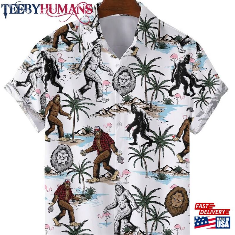 Bigfoot Hawaiian Shirts For Men Women Tropical Summer Aloha Casual Button Down Short Sleeve Unisex Shirt. The Hawaiian shirt has become a widely popular fashion item known for its bright colors and floral designs. These shirts are made of lightweight materials, making them an ideal option for warmer weather.