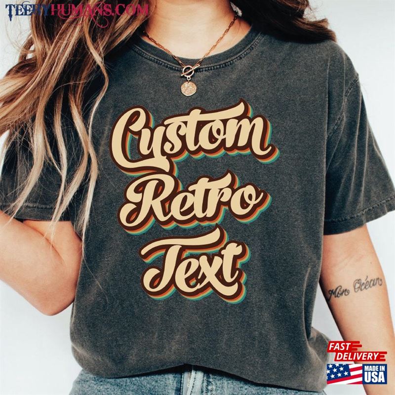 Our personalized products will ensure you are sending the right messages about your favorite Custom Shirt Retro Text T-Shirt Personalized For Women Toddler Grandpa Mom Girls Kids Sweatshirt t-shirt. Imagine people identifying the t-shirt or hoodie you love most without guessing. The best part is that these products are available at highly affordable prices.