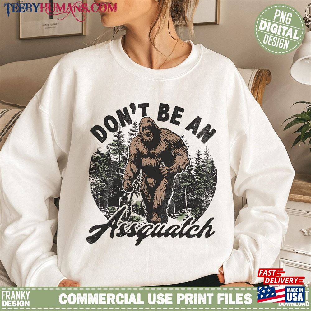 Our personalized products will ensure you are sending the right messages about your favorite Don’t Be An Assquatch Bigfoot Shirt Design Retro Sublimation Classic Sweatshirt t-shirt. Imagine people identifying the t-shirt or hoodie you love most without guessing. The best part is that these products are available at highly affordable prices.
