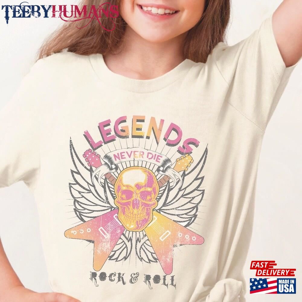 Legends Never Die Tee Comfort Colors Rock N Roll Tshirt T-Shirt Sweatshirt. The latest trend in music shirts is a shirt that reflects the top trends in music.