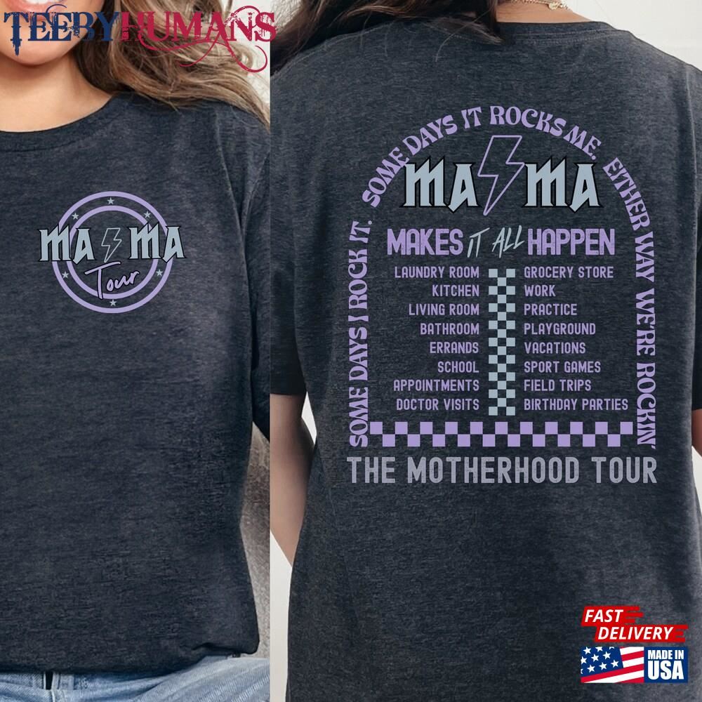 Mama Rock Tour Funny Mom T-Shirt Motherhood Trendy Life Shirt Rocks Concert For Mothers Day Gifts Hoodie A music t-shirt is a type of clothing that features designs, logos, or images related to music. It is a popular fashion choice among music enthusiasts, musicians, and fans of specific bands or genres. These t-shirts often display the names or album covers of favorite bands or artists, iconic symbols associated with music, or lyrics from beloved songs. Music t-shirts serve as a form of self-expression, allowing individuals to showcase their musical preferences and interests. They can be found in various styles, colors, and sizes, catering to different tastes and fashion trends. Music t-shirts are not only a fashion statement but also a way for people to connect with others who share similar musical interests. Wearing a music t-shirt can spark conversations and create a sense of belonging within a community of music lovers. Whether it’s a vintage band t-shirt from the past or a contemporary design featuring current artists, music t-shirts are a fun and stylish way to celebrate the power and influence of music in our lives.