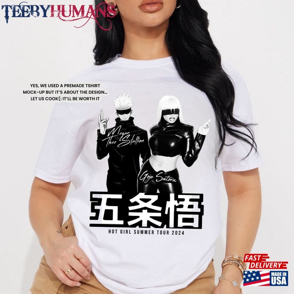 Megan Thee Stallion Shirt Vintage T-Shirt Sweatshirt A music t-shirt is a type of clothing that features designs, logos, or images related to music. It is a popular fashion choice among music enthusiasts, musicians, and fans of specific bands or genres. These t-shirts often display the names or album covers of favorite bands or artists, iconic symbols associated with music, or lyrics from beloved songs. Music t-shirts serve as a form of self-expression, allowing individuals to showcase their musical preferences and interests. They can be found in various styles, colors, and sizes, catering to different tastes and fashion trends. Music t-shirts are not only a fashion statement but also a way for people to connect with others who share similar musical interests. Wearing a music t-shirt can spark conversations and create a sense of belonging within a community of music lovers. Whether it’s a vintage band t-shirt from the past or a contemporary design featuring current artists, music t-shirts are a fun and stylish way to celebrate the power and influence of music in our lives.