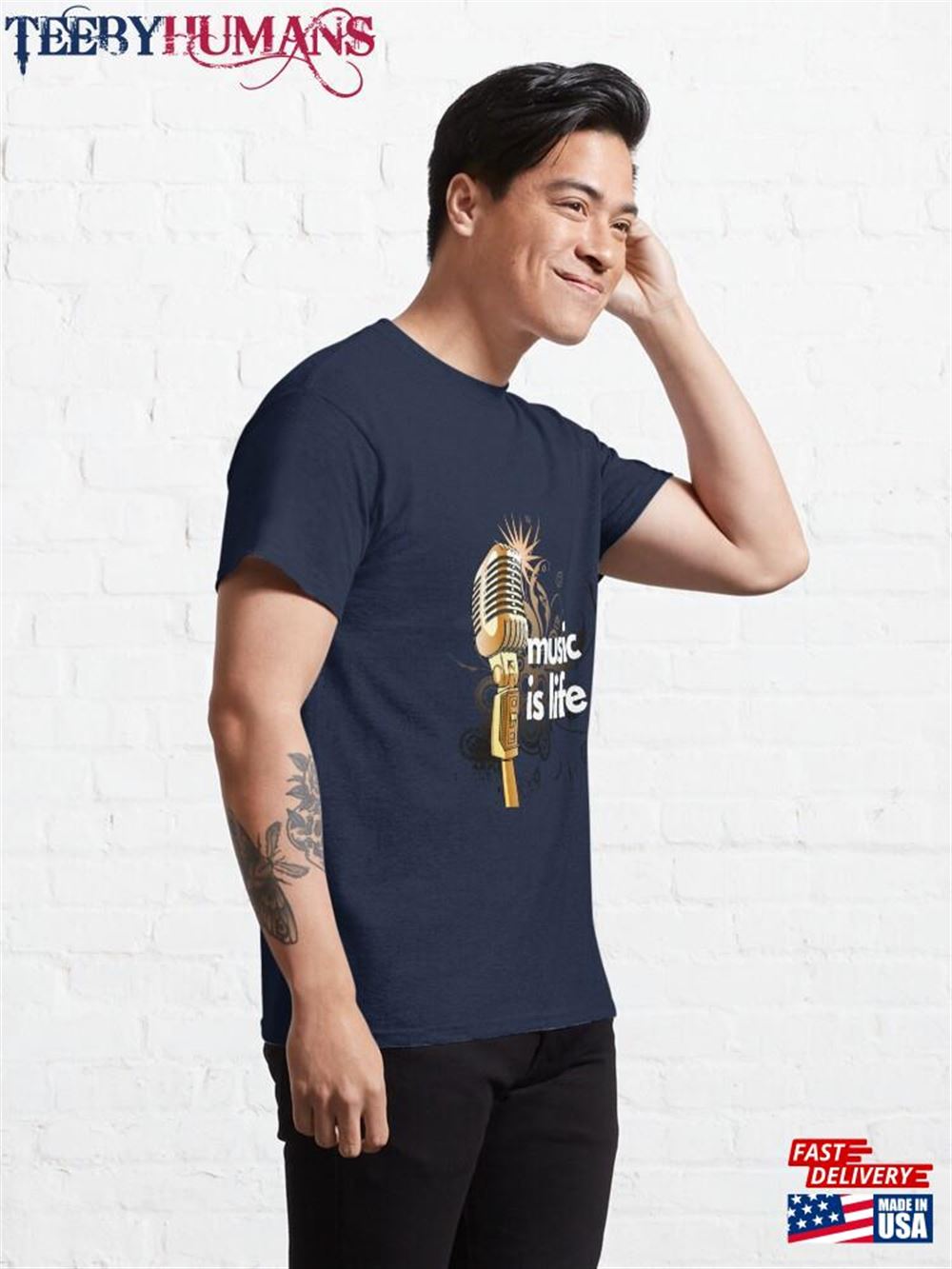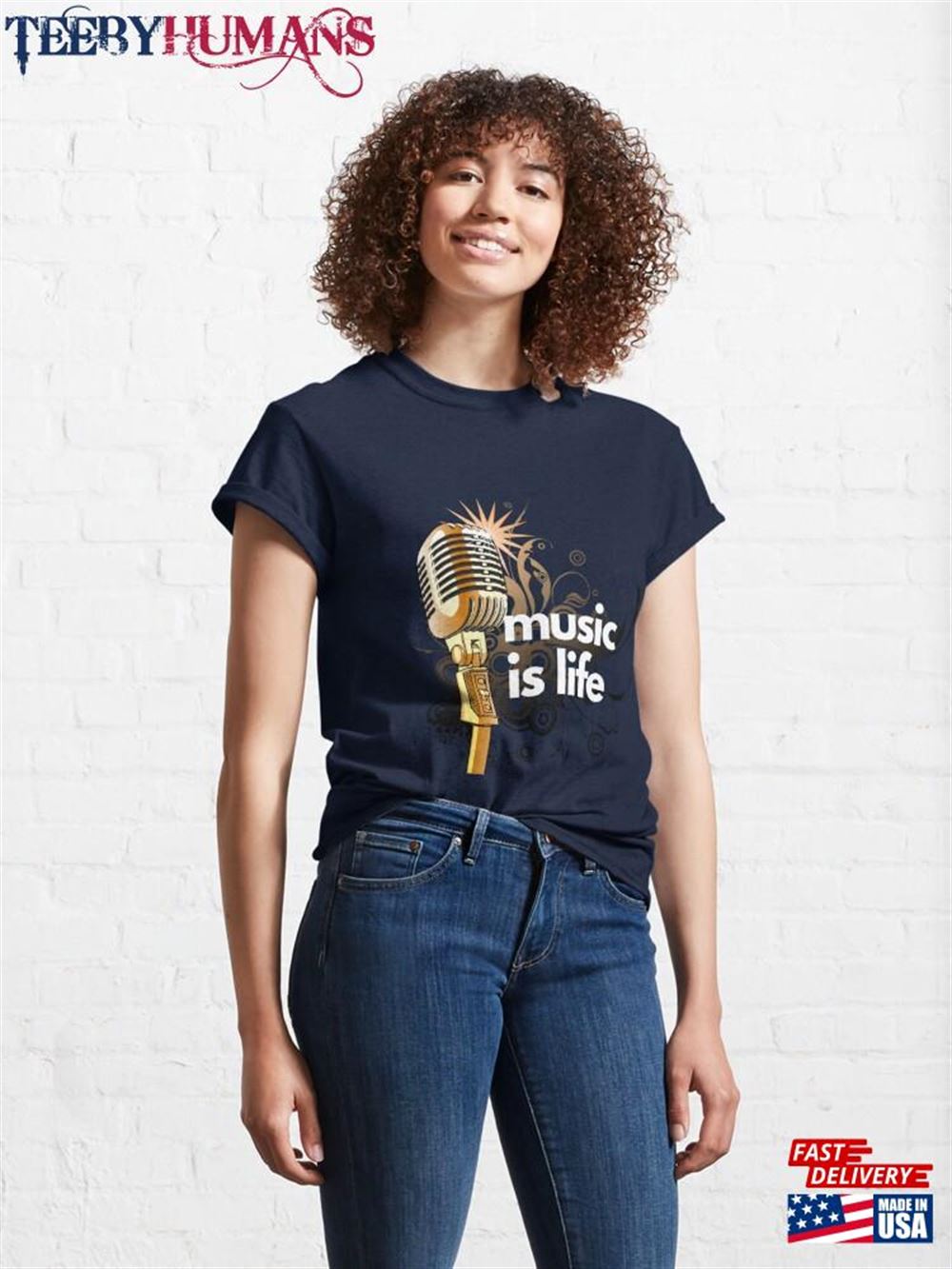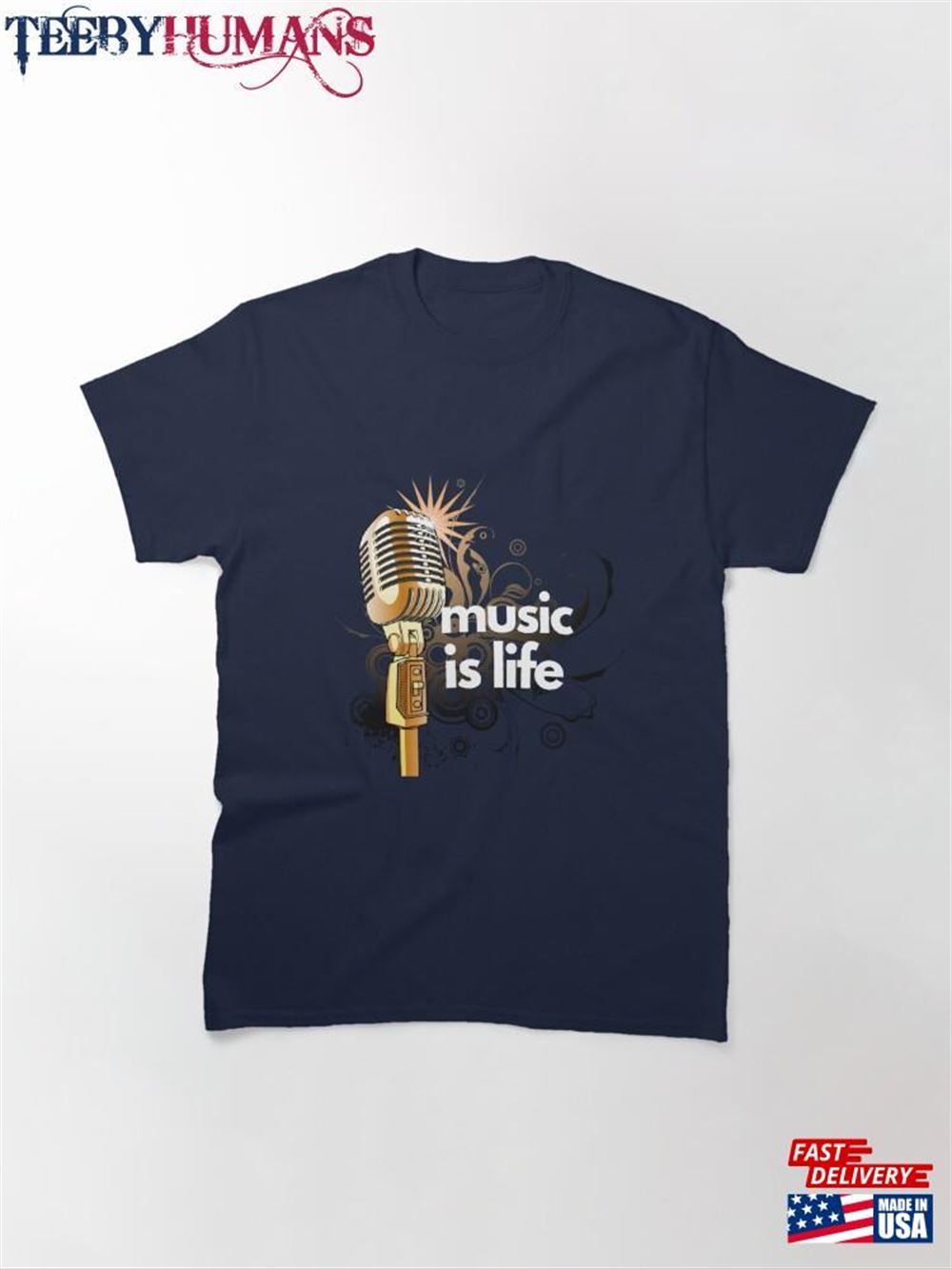 Music Is Life Classic T-Shirt Sweatshirt A music t-shirt is a type of clothing that features designs, logos, or images related to music. It is a popular fashion choice among music enthusiasts, musicians, and fans of specific bands or genres. These t-shirts often display the names or album covers of favorite bands or artists, iconic symbols associated with music, or lyrics from beloved songs. Music t-shirts serve as a form of self-expression, allowing individuals to showcase their musical preferences and interests. They can be found in various styles, colors, and sizes, catering to different tastes and fashion trends. Music t-shirts are not only a fashion statement but also a way for people to connect with others who share similar musical interests. Wearing a music t-shirt can spark conversations and create a sense of belonging within a community of music lovers. Whether it’s a vintage band t-shirt from the past or a contemporary design featuring current artists, music t-shirts are a fun and stylish way to celebrate the power and influence of music in our lives.