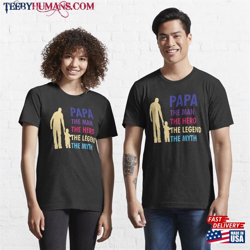 Papa The Man Hero Legend Myth Father’s Day Gifts Classic Unisex Father’s Day is an annual celebration of fathers and fatherhood, a time to recognize and appreciate the love and care that they provide. A gift for Father’s Day is a token of gratitude and affection that can be anything from gadgets and accessories to clothing and experiences. In recent years, custom-printed t-shirts have become a popular gift option, as they allow for a personalized touch that makes the gift even more special.