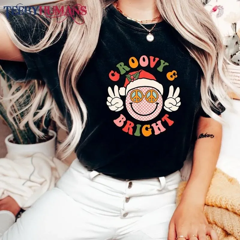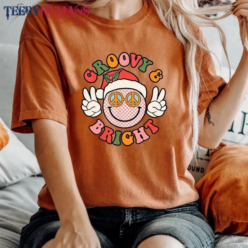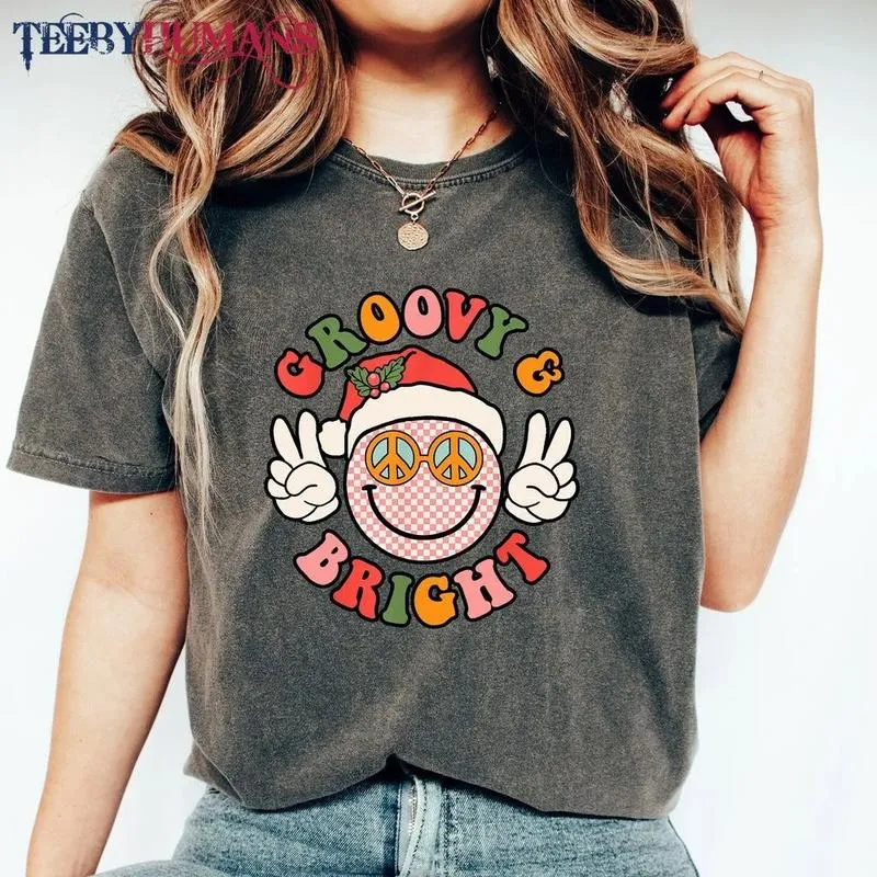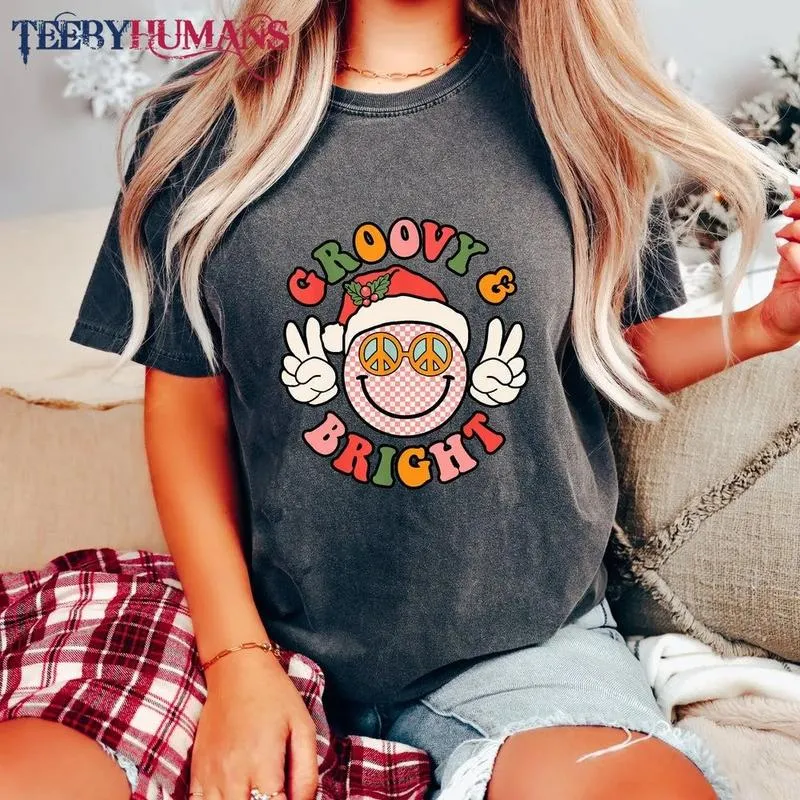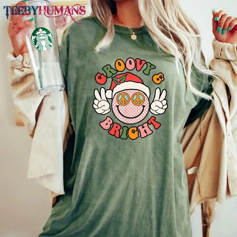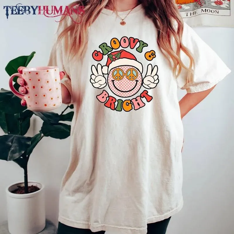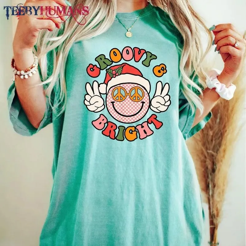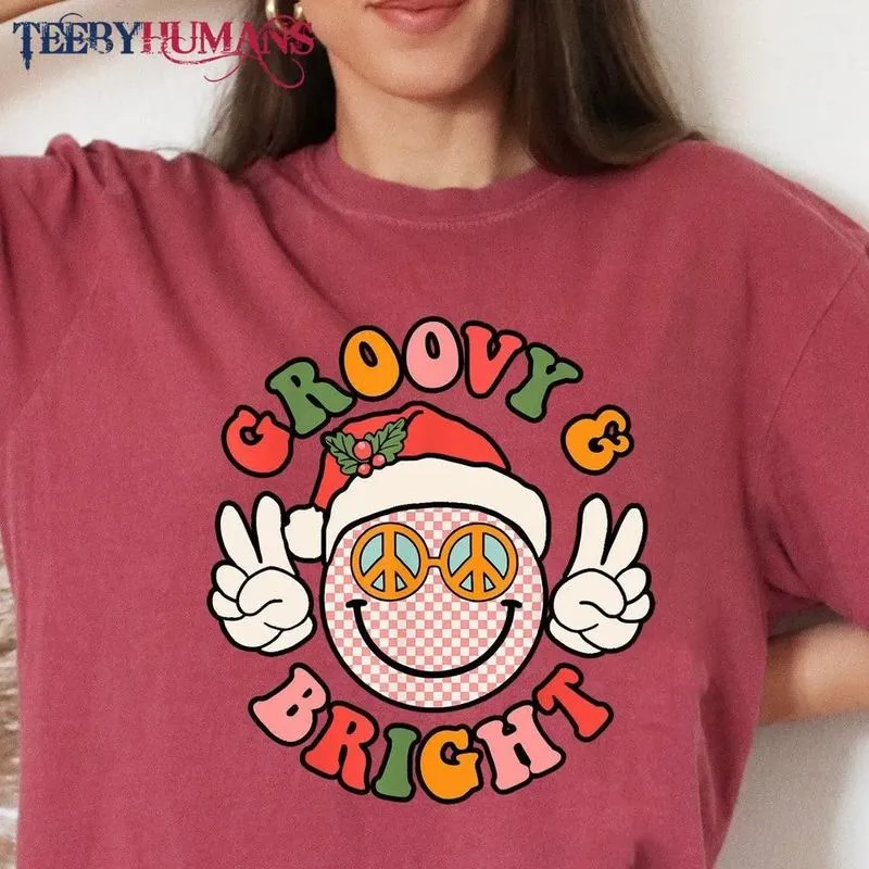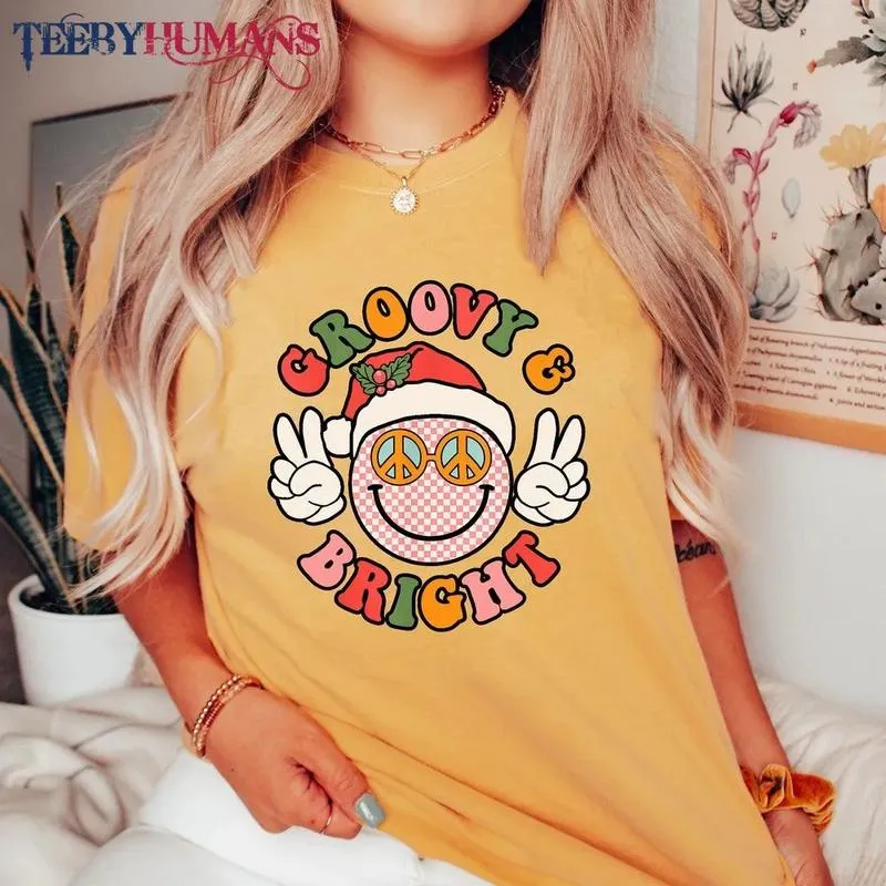 Retro Groovy And Bright Cute Christmas Happy Christmas Family Christmas Peace Unisex Sweatshirt Hoodie Classic Tee