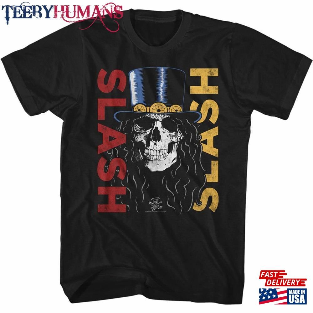 Slash Guns N Roses Double Skull Black Adult T-Shirt Unisex Classic A music t-shirt is a type of clothing that features designs, logos, or images related to music. It is a popular fashion choice among music enthusiasts, musicians, and fans of specific bands or genres. These t-shirts often display the names or album covers of favorite bands or artists, iconic symbols associated with music, or lyrics from beloved songs. Music t-shirts serve as a form of self-expression, allowing individuals to showcase their musical preferences and interests. They can be found in various styles, colors, and sizes, catering to different tastes and fashion trends. Music t-shirts are not only a fashion statement but also a way for people to connect with others who share similar musical interests. Wearing a music t-shirt can spark conversations and create a sense of belonging within a community of music lovers. Whether it’s a vintage band t-shirt from the past or a contemporary design featuring current artists, music t-shirts are a fun and stylish way to celebrate the power and influence of music in our lives.