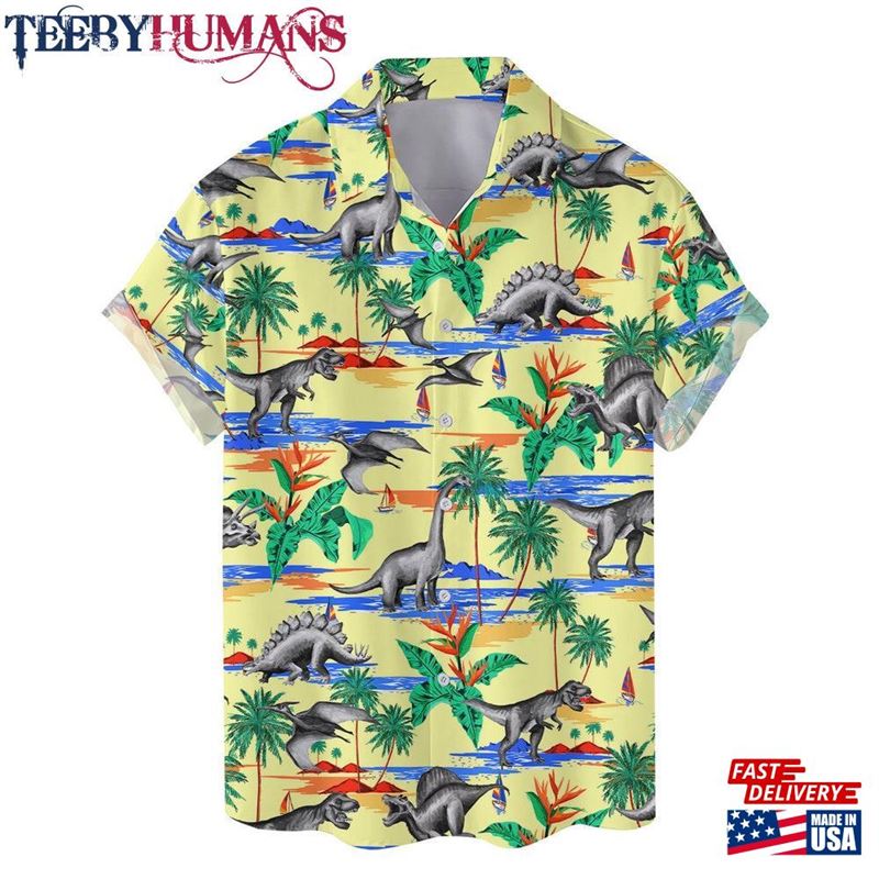 Tropical Dinosaur Hawaiian Shirts For Men Women Summer Aloha Button Down Short Sleeves Men’S Shirt Classic. The Hawaiian shirt has become a widely popular fashion item known for its bright colors and floral designs. These shirts are made of lightweight materials, making them an ideal option for warmer weather.