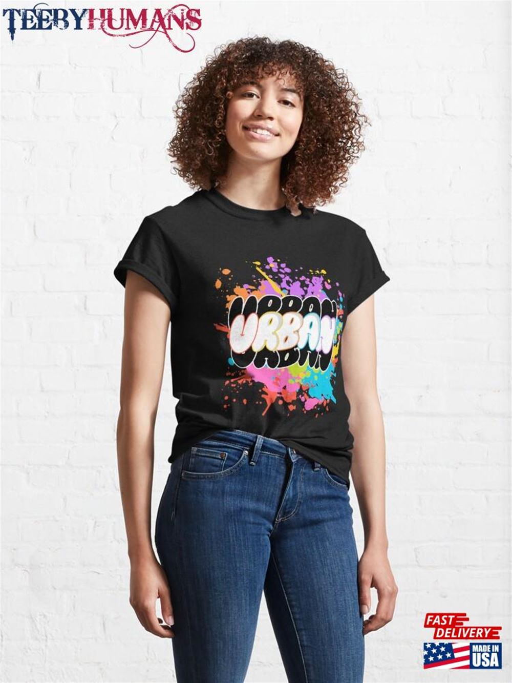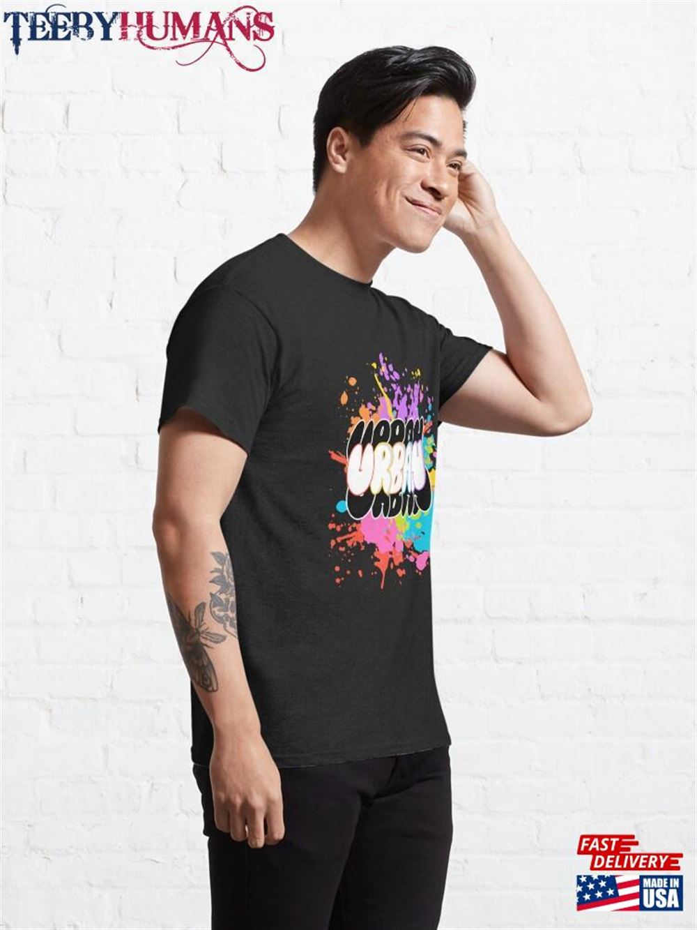 Urban Multi Color Splash Classic T-Shirt Unisex A music t-shirt is a type of clothing that features designs, logos, or images related to music. It is a popular fashion choice among music enthusiasts, musicians, and fans of specific bands or genres. These t-shirts often display the names or album covers of favorite bands or artists, iconic symbols associated with music, or lyrics from beloved songs. Music t-shirts serve as a form of self-expression, allowing individuals to showcase their musical preferences and interests. They can be found in various styles, colors, and sizes, catering to different tastes and fashion trends. Music t-shirts are not only a fashion statement but also a way for people to connect with others who share similar musical interests. Wearing a music t-shirt can spark conversations and create a sense of belonging within a community of music lovers. Whether it’s a vintage band t-shirt from the past or a contemporary design featuring current artists, music t-shirts are a fun and stylish way to celebrate the power and influence of music in our lives.