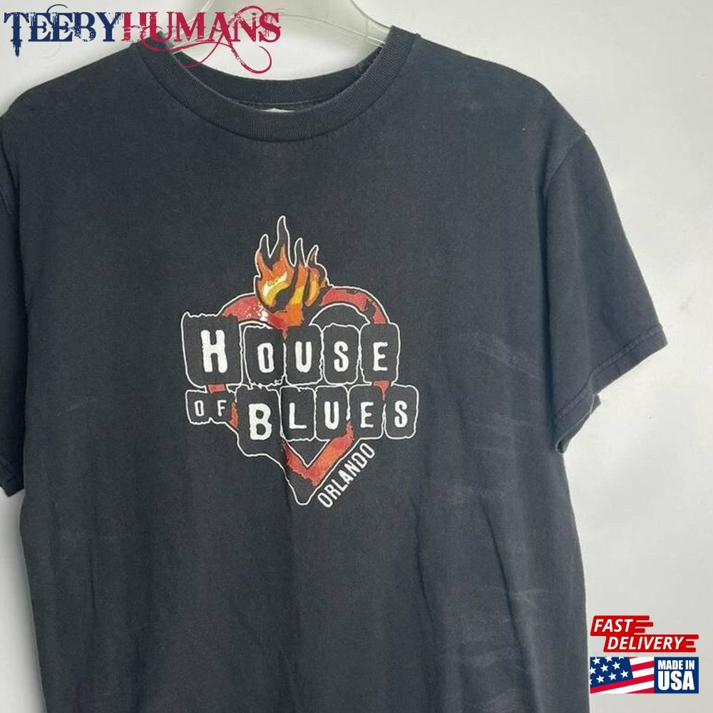 Vintage House Of Blues Orlando T-Shirt Classic Unisex A music t-shirt is a type of clothing that is designed to showcase one’s love and passion for music. It typically features various elements related to music, such as musical instruments, lyrics, album covers, or iconic images of famous musicians or bands. These t-shirts serve as a form of self-expression and allow individuals to display their musical taste and preferences to the world. Music t-shirts come in a wide range of styles, colors, and designs, catering to different genres and eras of music. They can be found in various sizes, from small to extra-large, ensuring that everyone can find a t-shirt that fits them comfortably. Some music t-shirts may also incorporate additional elements like tour dates, concert venues, or band logos, making them even more unique and collectible for fans. Wearing a music t-shirt not only shows one’s admiration for a particular artist or band but also serves as a conversation starter among fellow music enthusiasts. It can spark discussions about favorite songs, albums, or memorable concert experiences, creating a sense of camaraderie and shared passion for music. Music t-shirts are not only popular among fans but also embraced by musicians themselves. Many artists and bands create their own merchandise, including t-shirts, as a way to promote their music and connect with their audience. These t-shirts often become sought-after items for fans, representing a special connection to their favorite artists. In addition to being a fashion statement, music t-shirts can also be seen as a form of nostalgia. They can evoke memories of past concerts, music festivals, or significant moments in one’s life that were accompanied by a particular song or artist. By wearing a music t-shirt, individuals can relive those cherished memories and keep the spirit of music alive. Overall, a music t-shirt is more than just a piece of clothing. It is a symbol of one’s love for music, a means of self-expression, and a way to connect with others who share the same passion. Whether worn casually or at music events, these t-shirts serve as a reminder of the power and influence that music has on our lives.