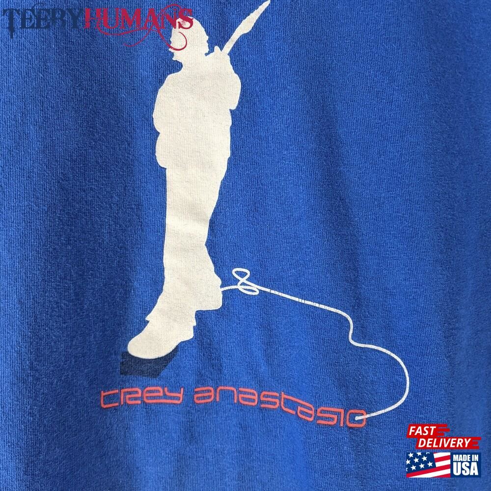 Vintage Y2k Trey Anastasio Summer Tour 2001 Shirt Adult Size Xl Phish Band Tee Double Sided Sweatshirt T-Shirt A music t-shirt is a type of clothing that features designs, logos, or images related to music. It is a popular fashion choice among music enthusiasts, musicians, and fans of specific bands or genres. These t-shirts often display the names or album covers of favorite bands or artists, iconic symbols associated with music, or lyrics from beloved songs. Music t-shirts serve as a form of self-expression, allowing individuals to showcase their musical preferences and interests. They can be found in various styles, colors, and sizes, catering to different tastes and fashion trends. Music t-shirts are not only a fashion statement but also a way for people to connect with others who share similar musical interests. Wearing a music t-shirt can spark conversations and create a sense of belonging within a community of music lovers. Whether it’s a vintage band t-shirt from the past or a contemporary design featuring current artists, music t-shirts are a fun and stylish way to celebrate the power and influence of music in our lives.