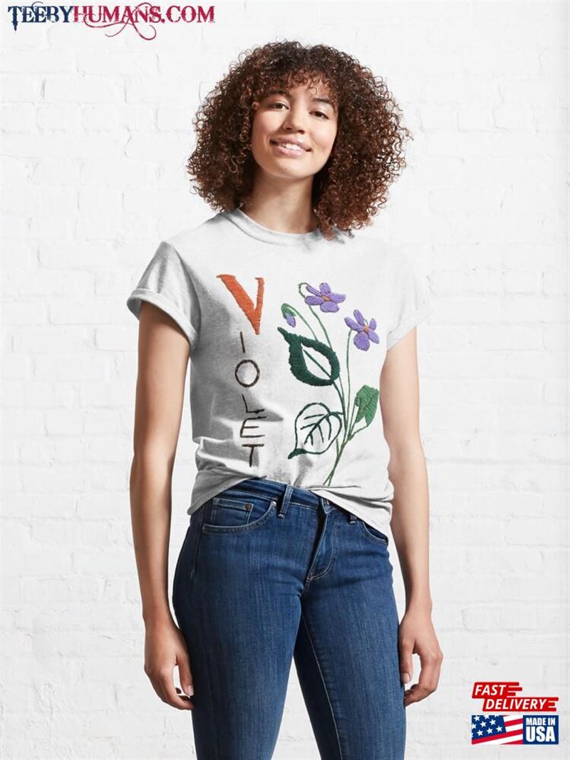 Violet Embroidery Vintage Digitized Cottagecore Style Classic T-Shirt Hoodie. T-shirts that feature embroidery are a fashionable and modern choice for any wardrobe. With their detailed designs and expert stitching, these shirts are a great way to make a bold statement and enhance any outfit. In addition to their stylish appearance, they also offer a comfortable and cozy feel against the skin.
